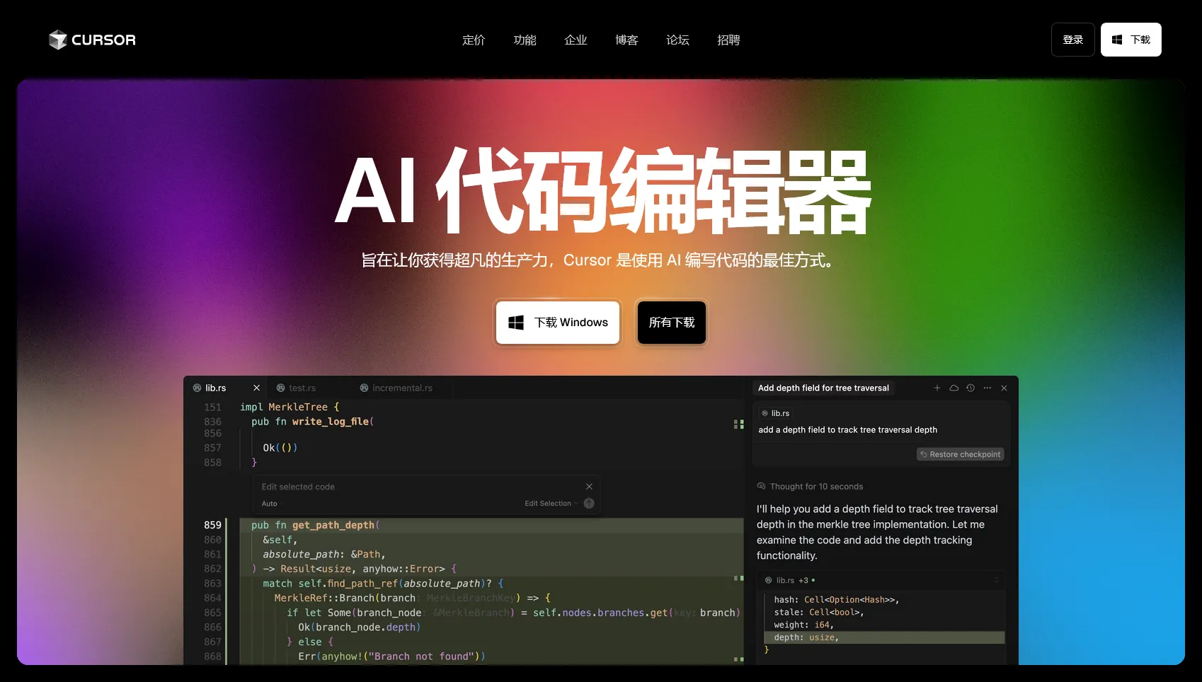 Cursor:AI IDE。由Anysphere开发,免费用户仅能使用Auto模型(一般不会分配到Claude模型)。Pro计划10USD/m,仅支持Paypal和海外卡支付