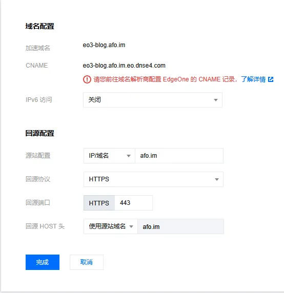 因为这玩意是一个CDN,需要一个源站。如果你是静态站点可以用Cloudflare Page部署一个站,然后设置回源如下(注意回源Hosts头要填写源站域名,否则CF可能会报423 Locked 他妈的比腾讯云的418我是个茶壶规范多了�*)