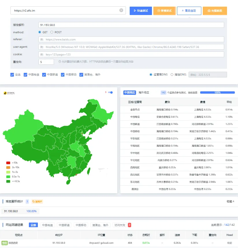 需要注意,有一些Byoip可能会强制跳转到它自己的网站。需要查看ITDog的测试日志是否有重定向,别让你的网站成为他人的引流站
