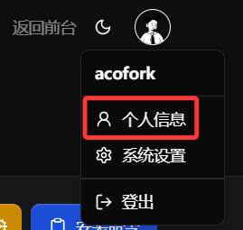 首先我们先更改管理员账密,鼠标移到右上角头像,点击 个人信息