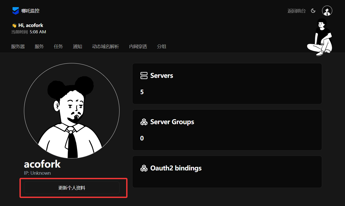 接下来,你应该可以在 8008 端口进入哪吒探针的WebUI