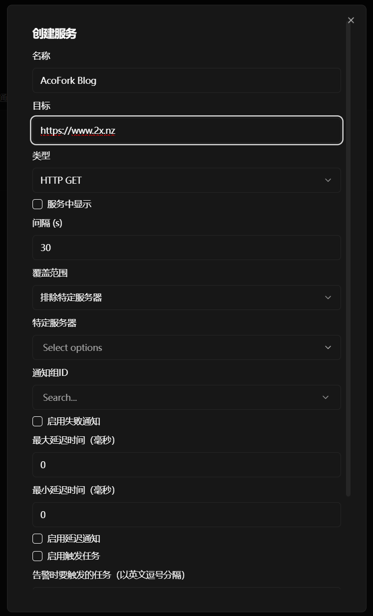 这里添加的所有服务,都可以借用已添加到哪吒探针的服务器进行监测