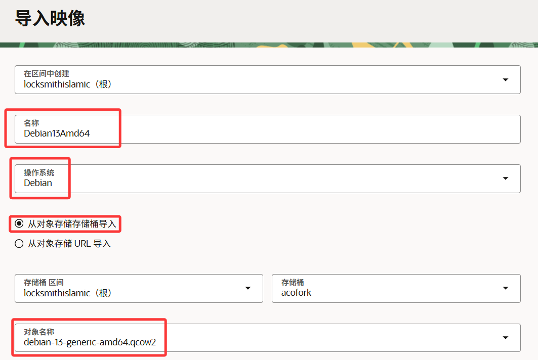 前往 https://cloud.oracle.com/compute/images 点击 导入映像 按需填写