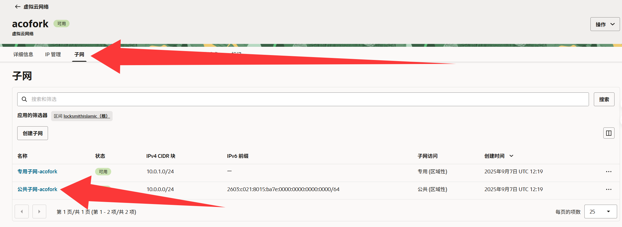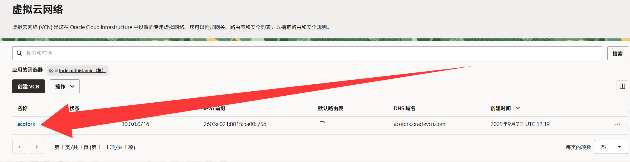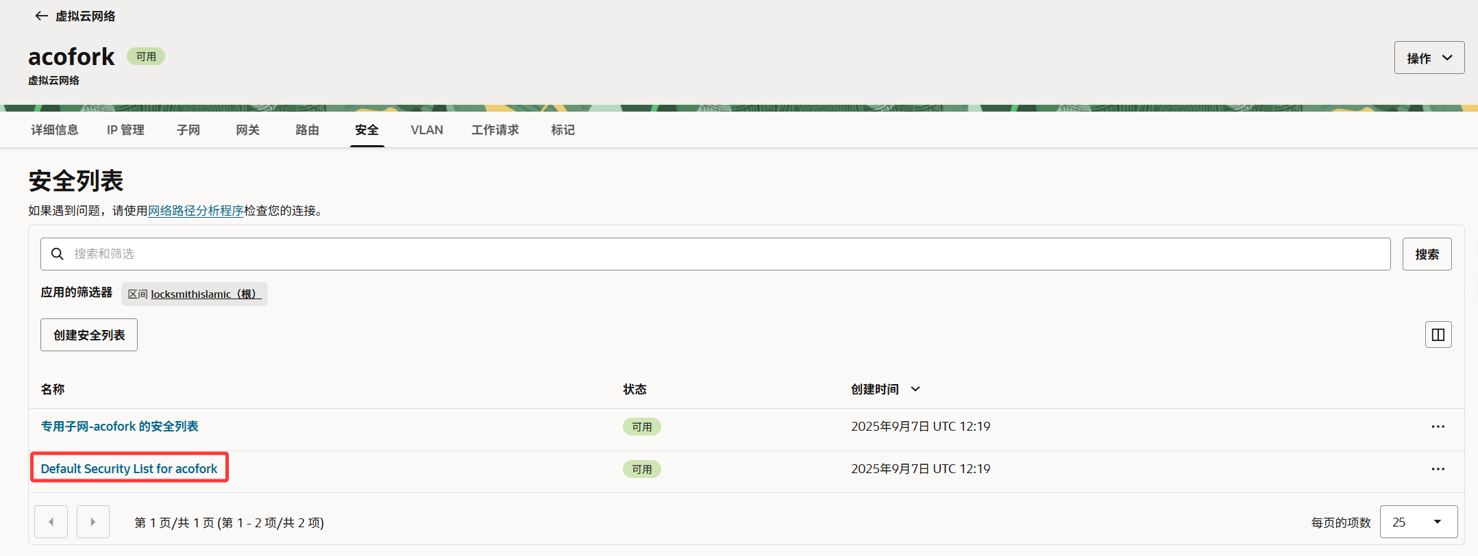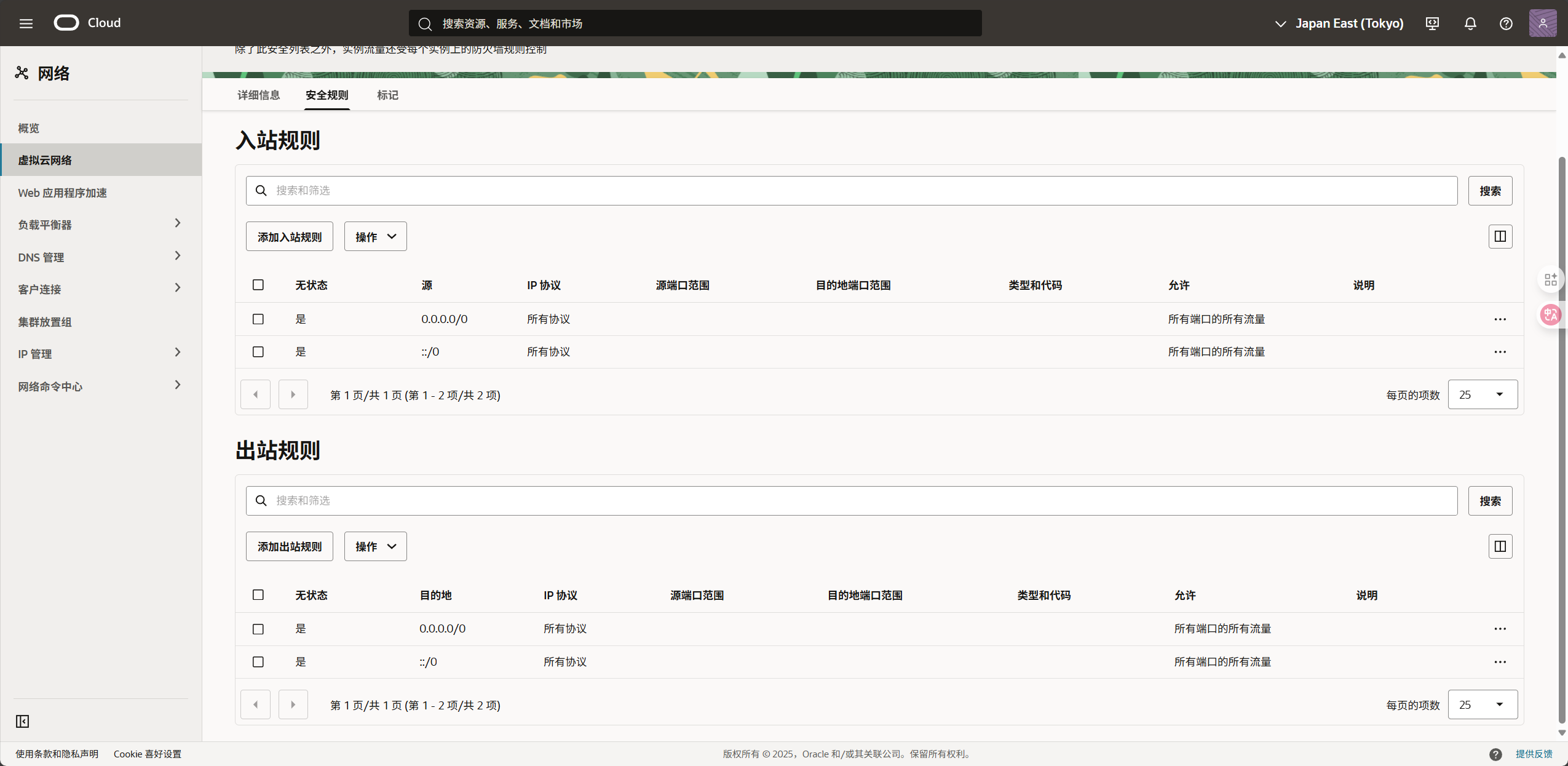 前往 https://cloud.oracle.com/networking/vcns ,进入你刚刚创建的VCN,导航栏点击 安全 找到这个