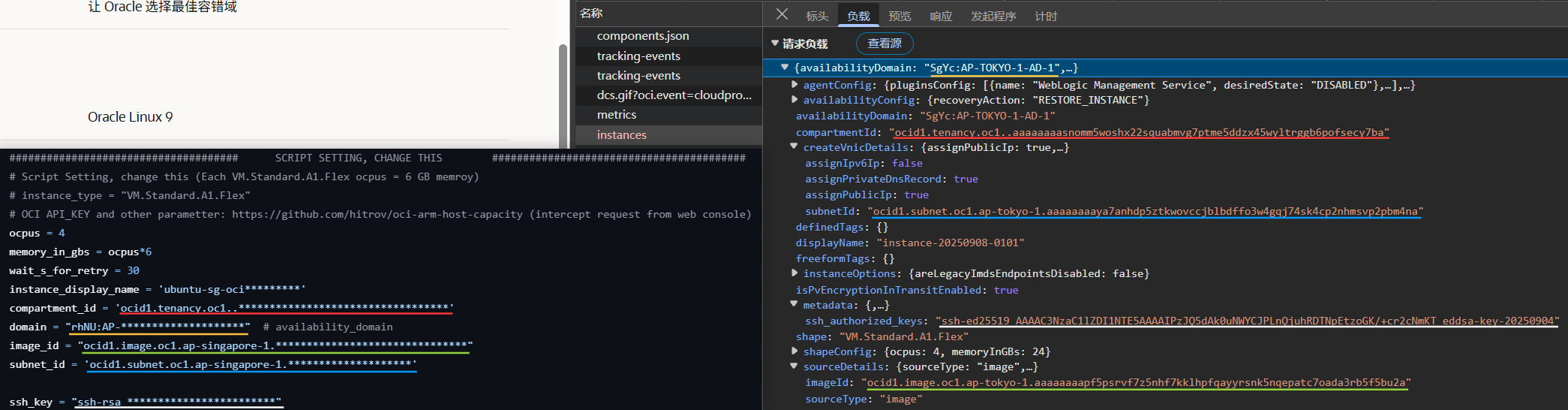 前往 https://cloud.oracle.com/compute/instances/create 再次尝试创建一个arm机子,并且F12抓包,查看该包的详情