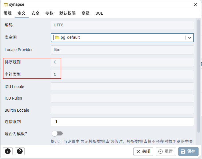 安装并创建名为 synapse 用户名也为 synapse 的数据库