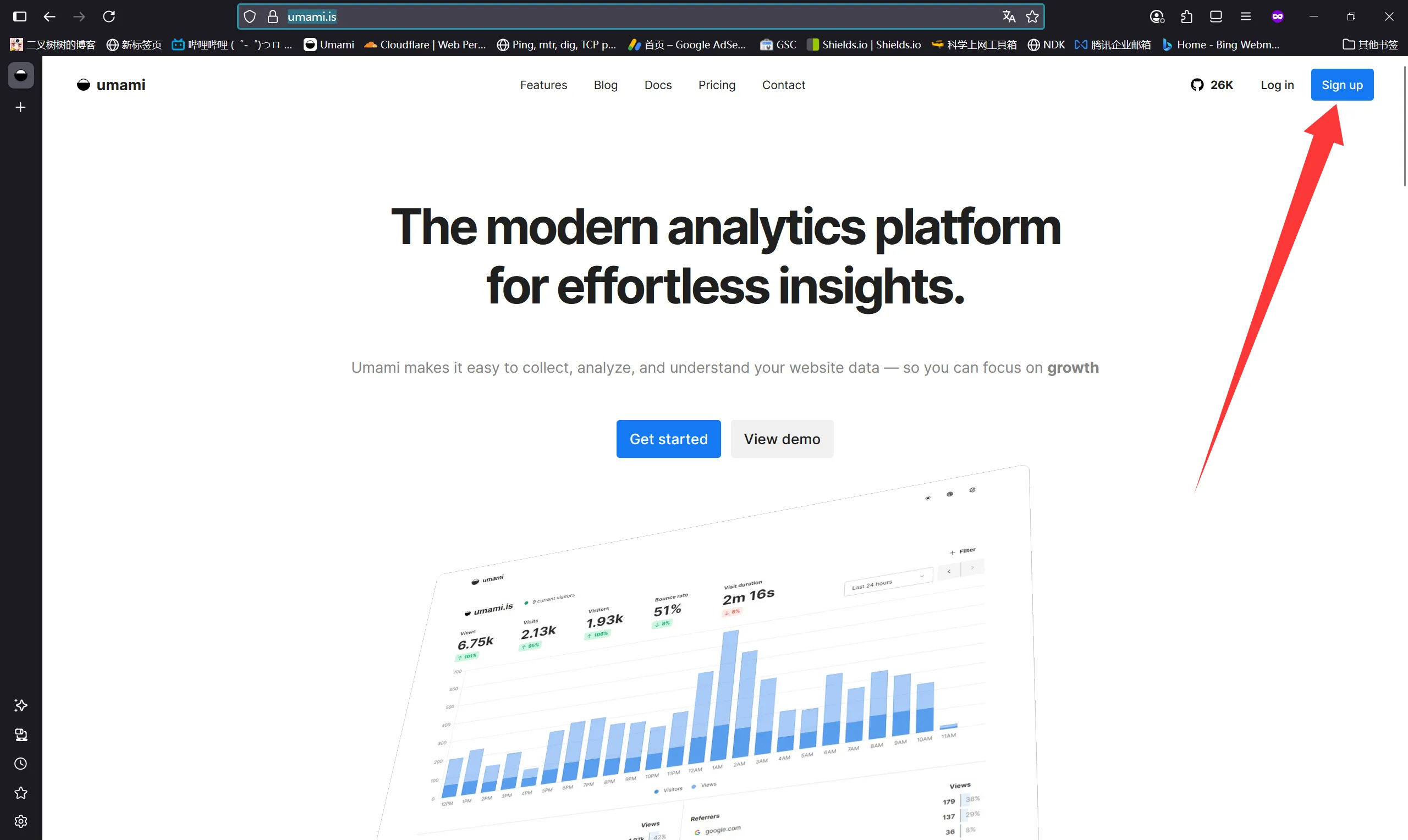 进入 https://umami.is/ (如果进不去请检查是否有广告拦截器拦截了Umami!!!)