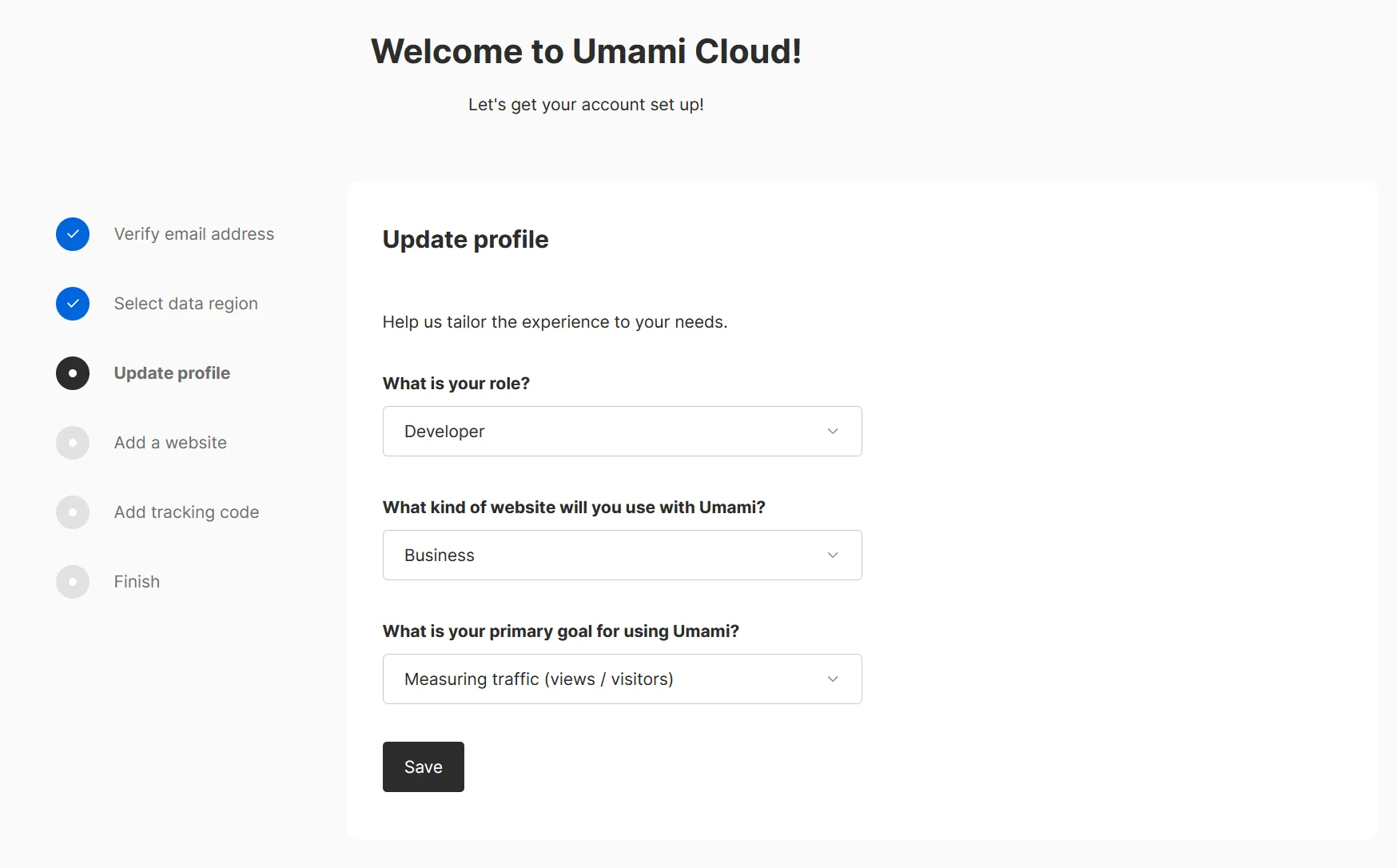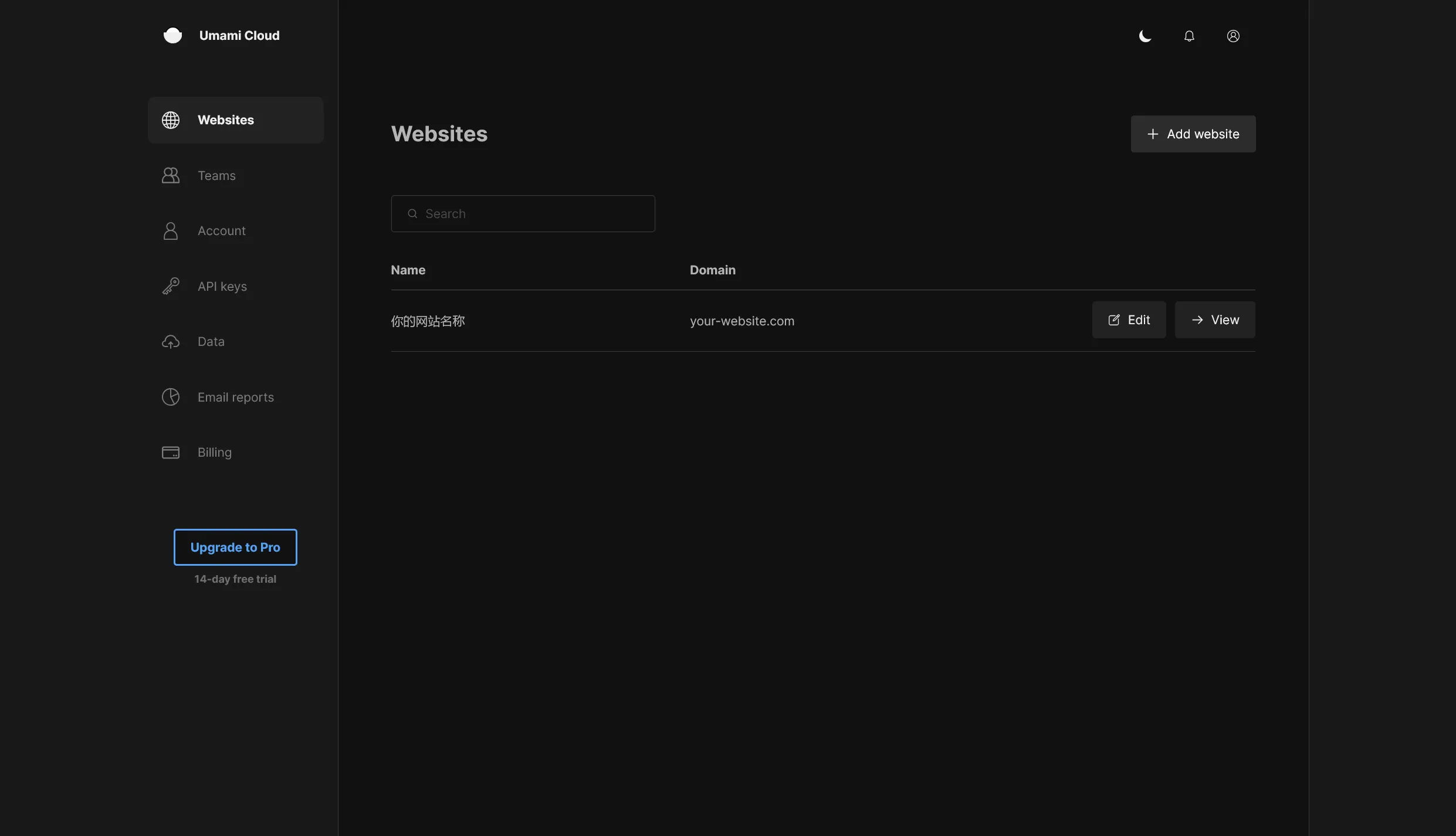 本教程针对于Umami Cloud的上手使用,如果你需要自托管Umami请自行寻找相关文档