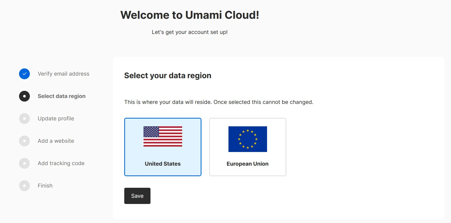 区域选择任意(选美国你的统计数据就记录在美国的服务器,选欧盟你的统计数据就记录在欧盟的服务器)