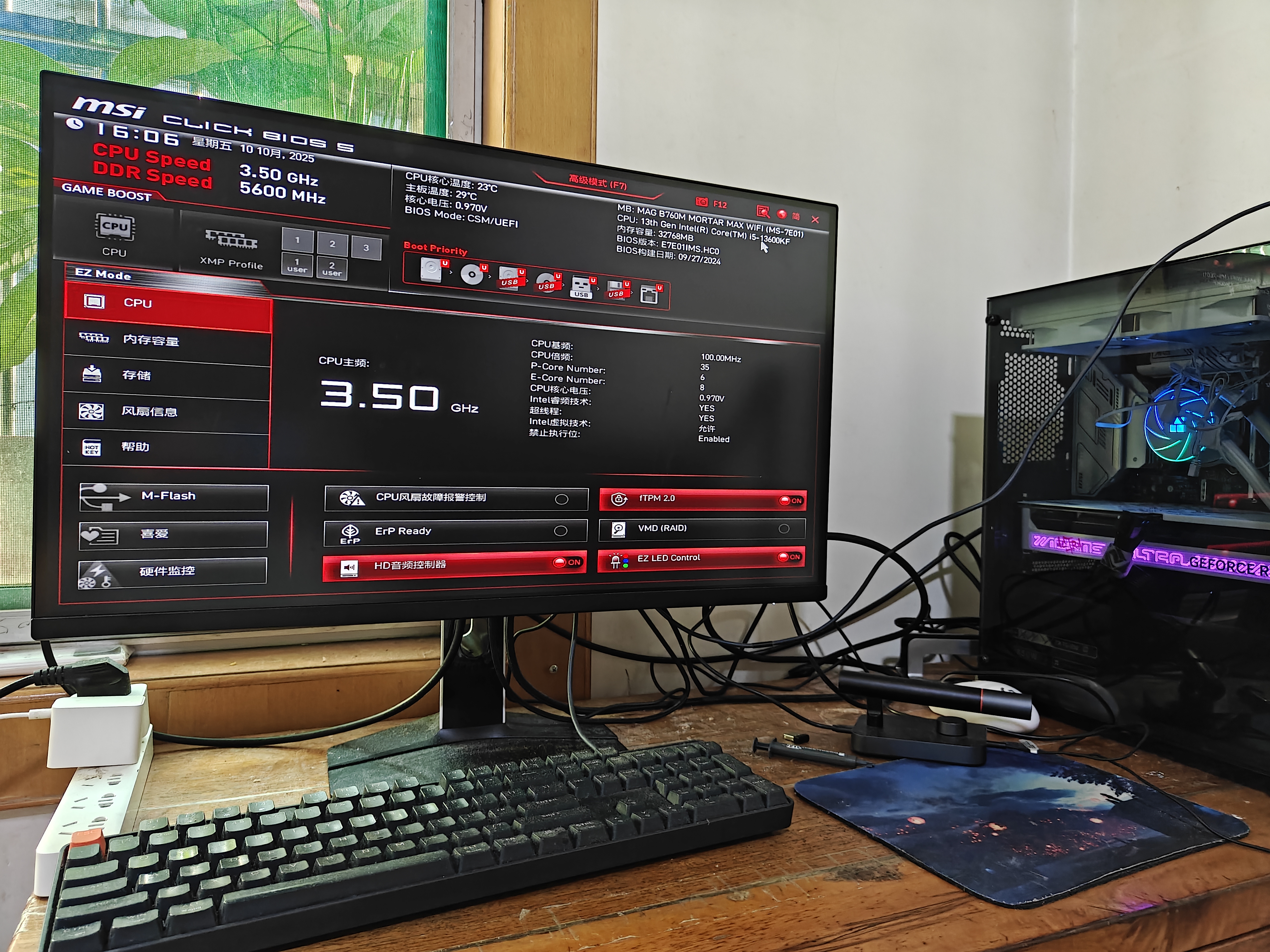 人生中的第一台自己组装的台式!键盘亮显示器必亮!