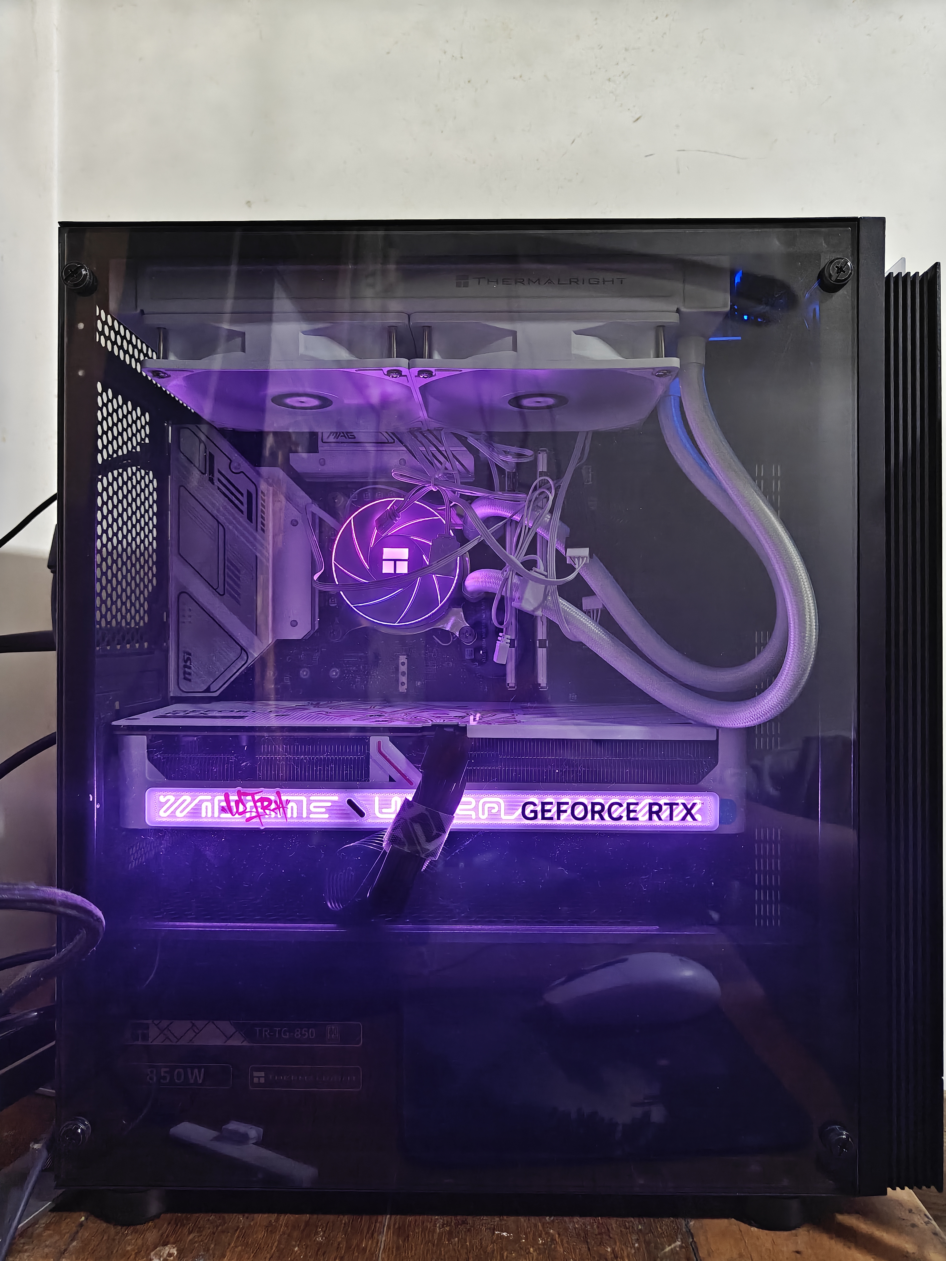 水冷。现在装机不仅仅是让他能 跑起来 更是美观和 R!G!B! ,但是,这个水冷一共有三个RGB线,但是主板上只有一个RGB接口,听说是要做 神光同步 的,但是你既然包装内没带集线器那我就不接了,反正对我来说 R!G!B! 是徒增功耗(不过这小灯确实挺好看的