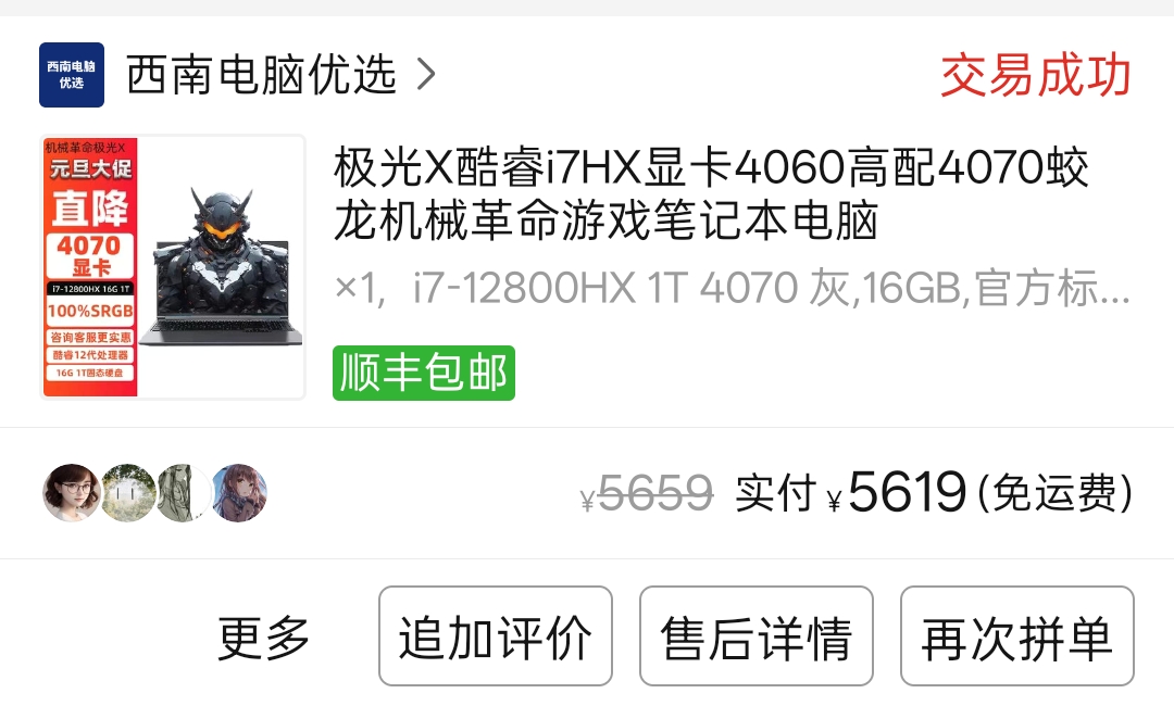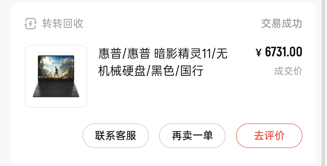 不用我说,你们应该也猜到了,没错!又是5天之后,我把 暗影精灵11锐龙版 在 转转 上出掉了。当质检小哥再次问我的你机子买了几天的时候,我说5天,他愣住了,随后说道:这我还测集贸了 随后不到十分钟我就收到打款了