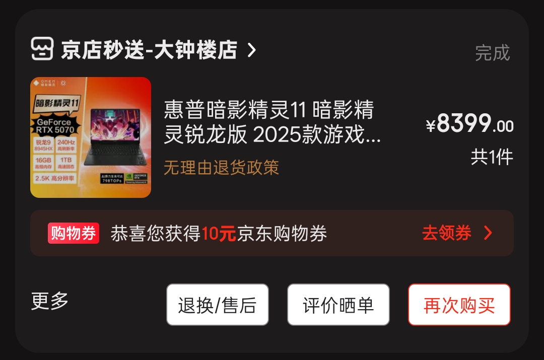 可能是一时心急,一不小心发现了京东有一个闪购功能,又一不小心溢价了一千买了个 暗影精灵11锐龙版 ,闪购确实很闪啊,半小时不到就送到了