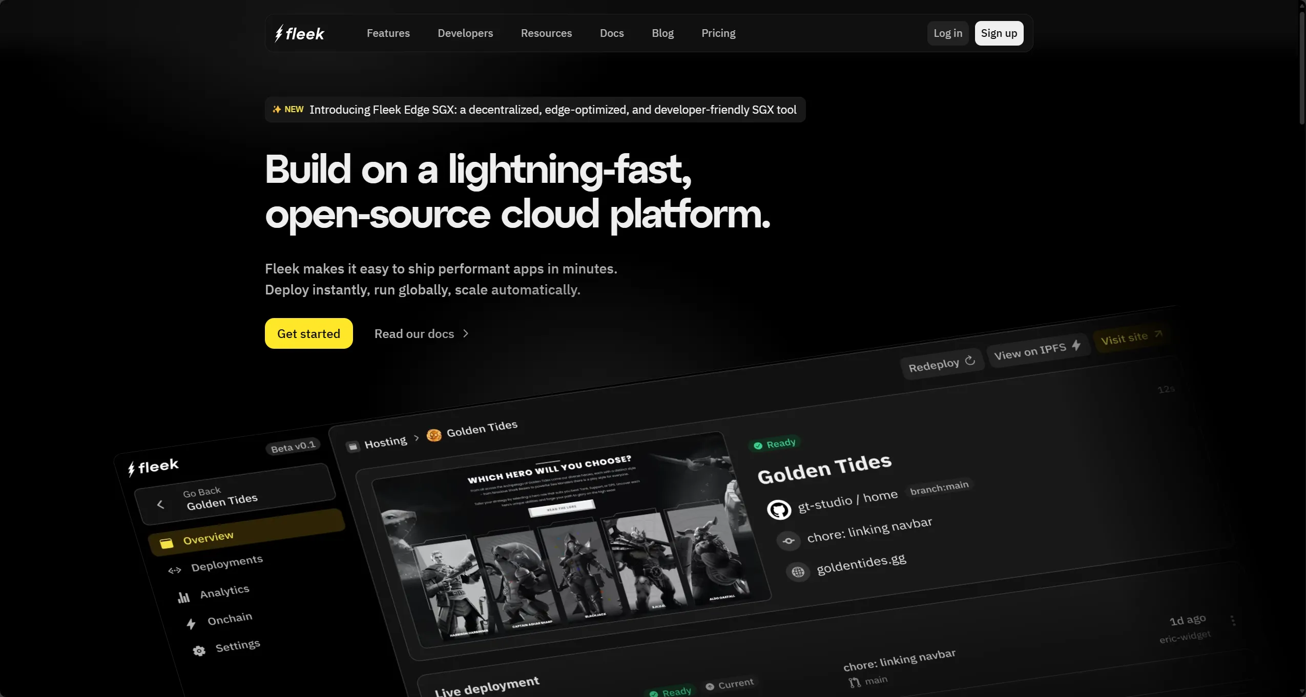 你可以简单理解为它权重很大,有很多的IPFS节点,经由Fleek上传到IPFS网络上的文件可以在几秒内完成广播,并且支持连接Git存储库部署项目和绑定你的域名