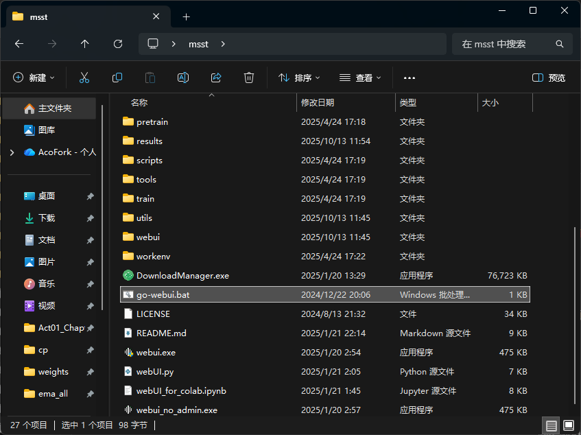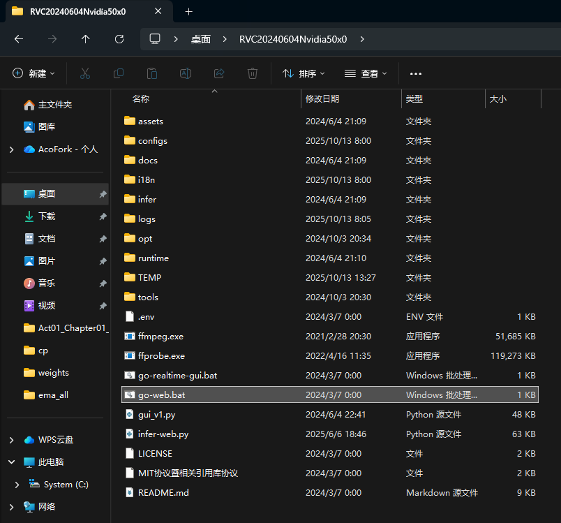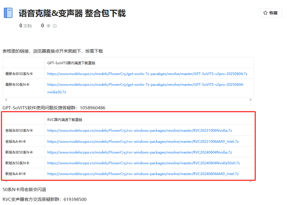 进入 RVC-Project/Retrieval-based-Voice-Conversion-WebUI: Easily train a good VC model with voice data <= 10 mins! 根据你的系统和显卡来进行下载,或者使用该链接下载(国内高速) 语音克隆&变声器 整合包下载 注意不要下错了