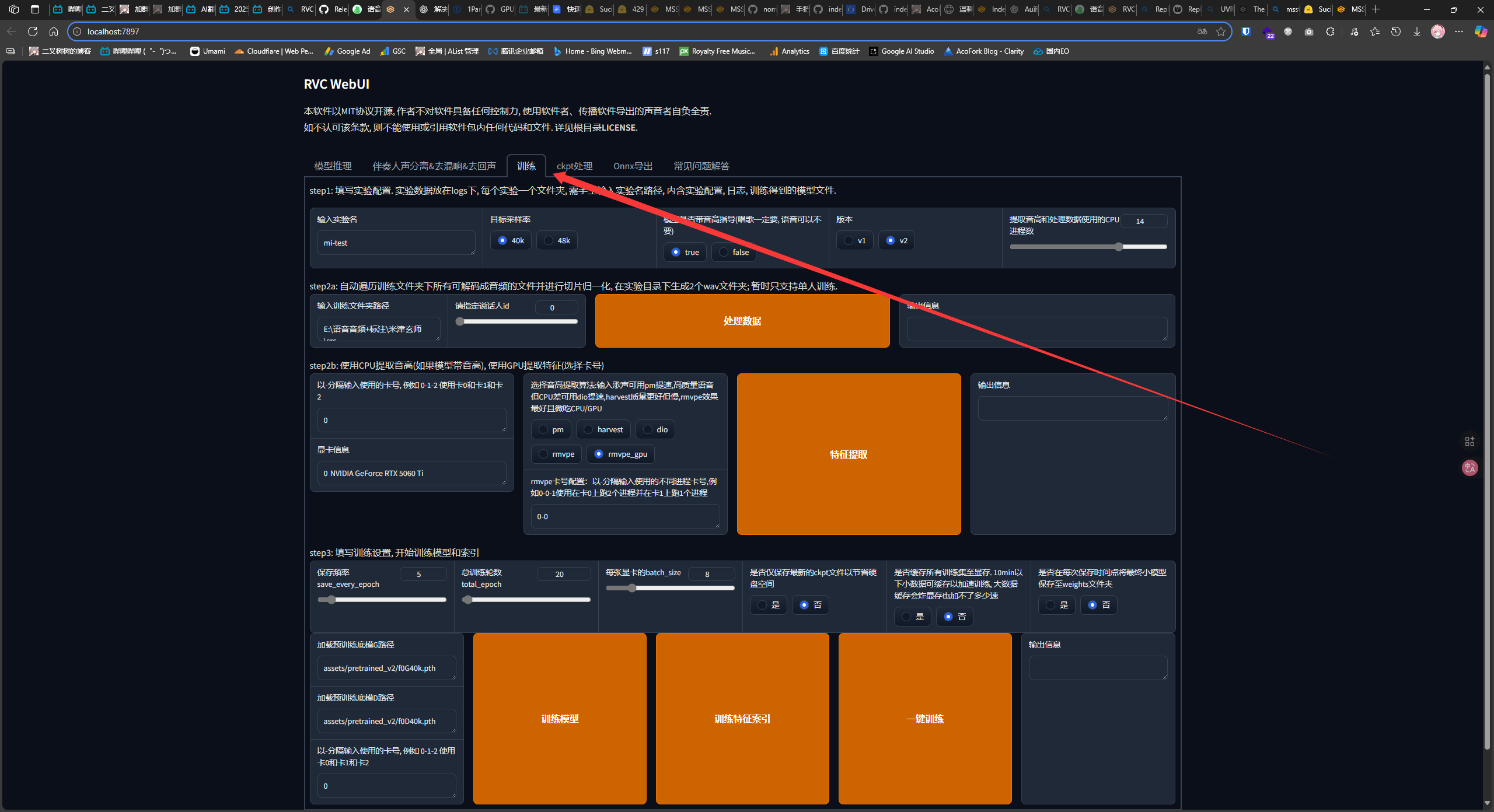 然后点击一键训练(需要很久,建议晚上睡觉前训练)